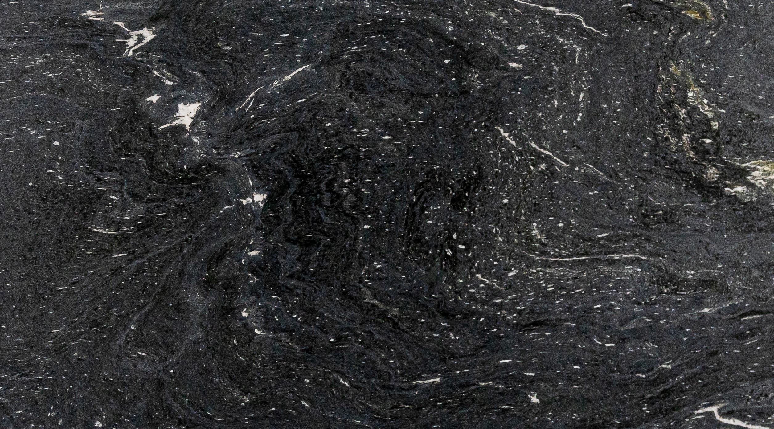 O Granito Via Láctea Escovado possui um visual marcante e sofisticado, com um fundo preto profundo e veios brancos que lembram a imensidão do universo.